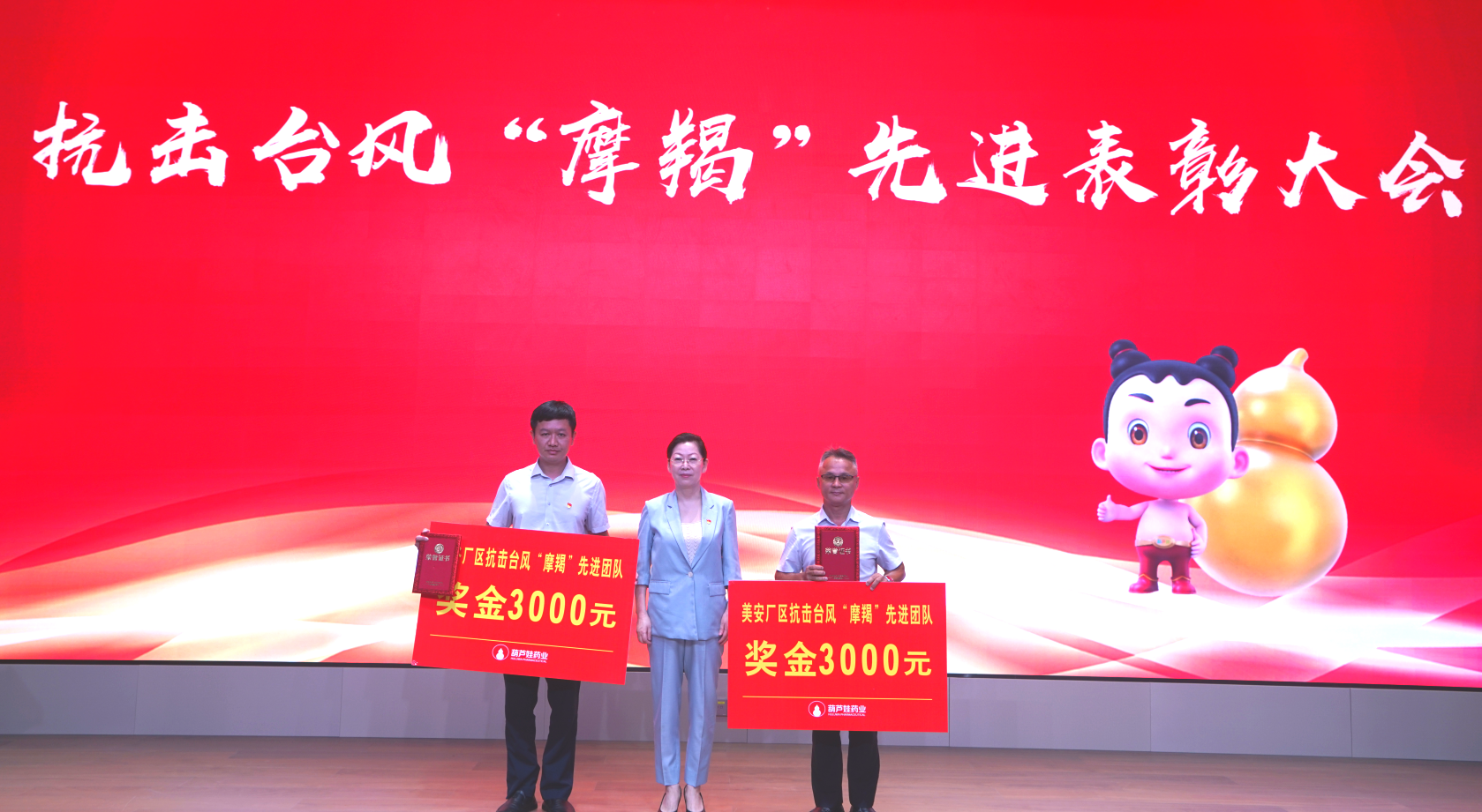 集团党委书记、董事长刘景萍向受表彰的先进个人和团队表示祝贺,向抗击台风“摩羯”的全体员工表示敬意。她指出这次抗台救灾工作充分展示了ag博天堂人的担当精神和奋斗精神,是集团企业文化建设的重要成果。集团党委统筹组织、群团组织群策群力,全体党员和广大员工积极参与,在抗台抢险、复工复产工作有序推进的同时,积极承担社会责任向受灾地区和受灾居民施以援手、捐资捐物,体现了ag博天堂药业集团的责任担当。她要求全体员工在今后的工作中,要继续发扬这种精神,积极应对各类风险挑战,奋力推进自贸港医药工业中国式现代化建设。